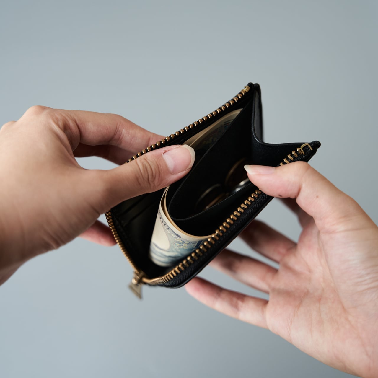 片手に収まるコンパクトなサイズですが、メインの財布として使っていただけるほどに見た目以上の収納量があります。